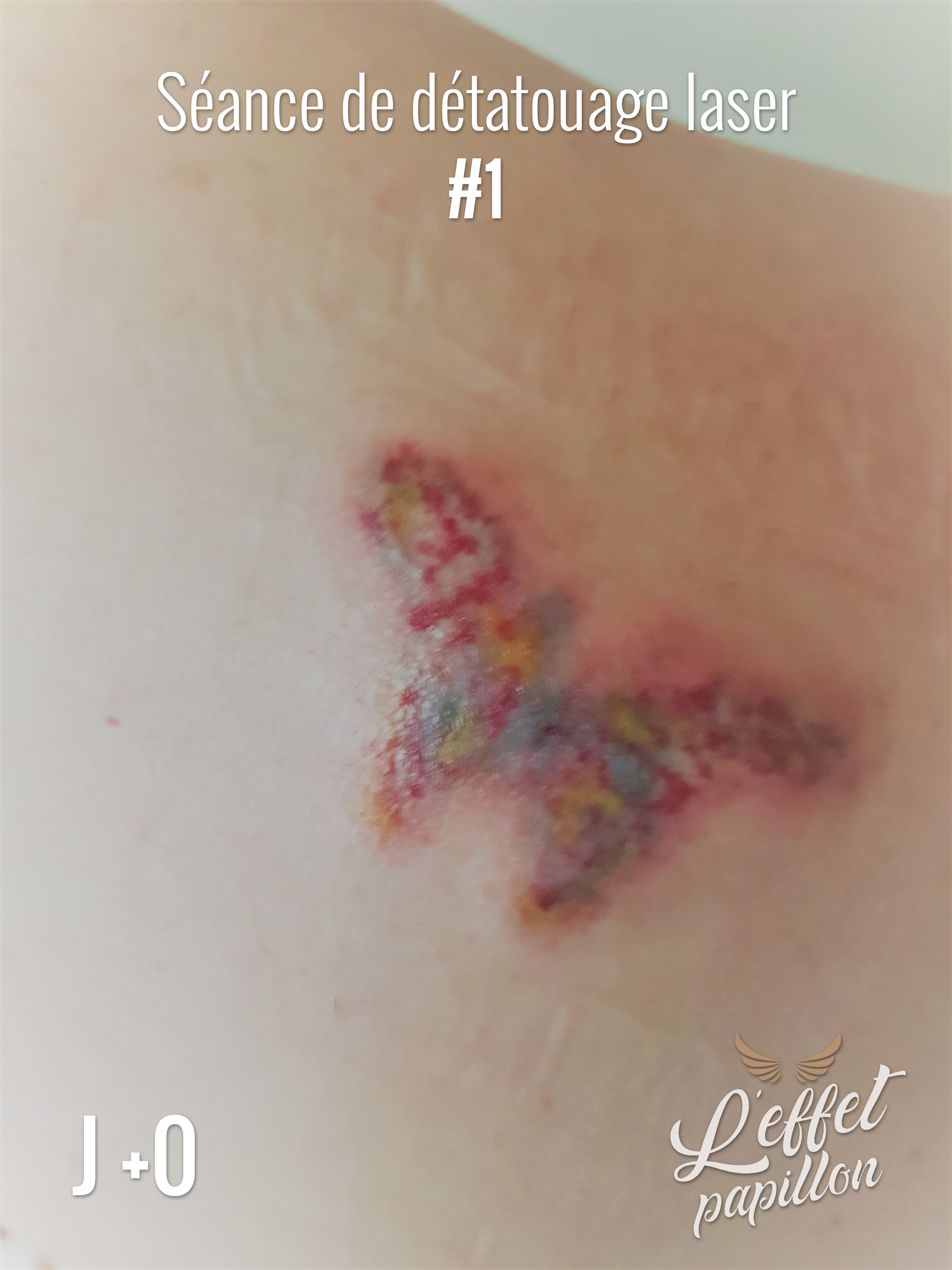 Ça y est le grand jour est arrivé ! Ma première séance de détatouage de ce maudit papillon a eu lieu hier ! J’étais impatiente mais aussi très stressée, avec l’appréhension de la douleur, les témoignages que l’on trouve sur internet étant tous d’accord sur le fait que c’est très douloureux.